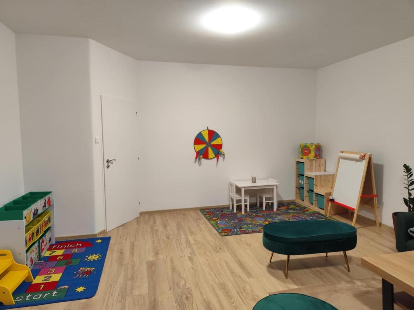 For guests with children, the apartment provides an indoor play area.