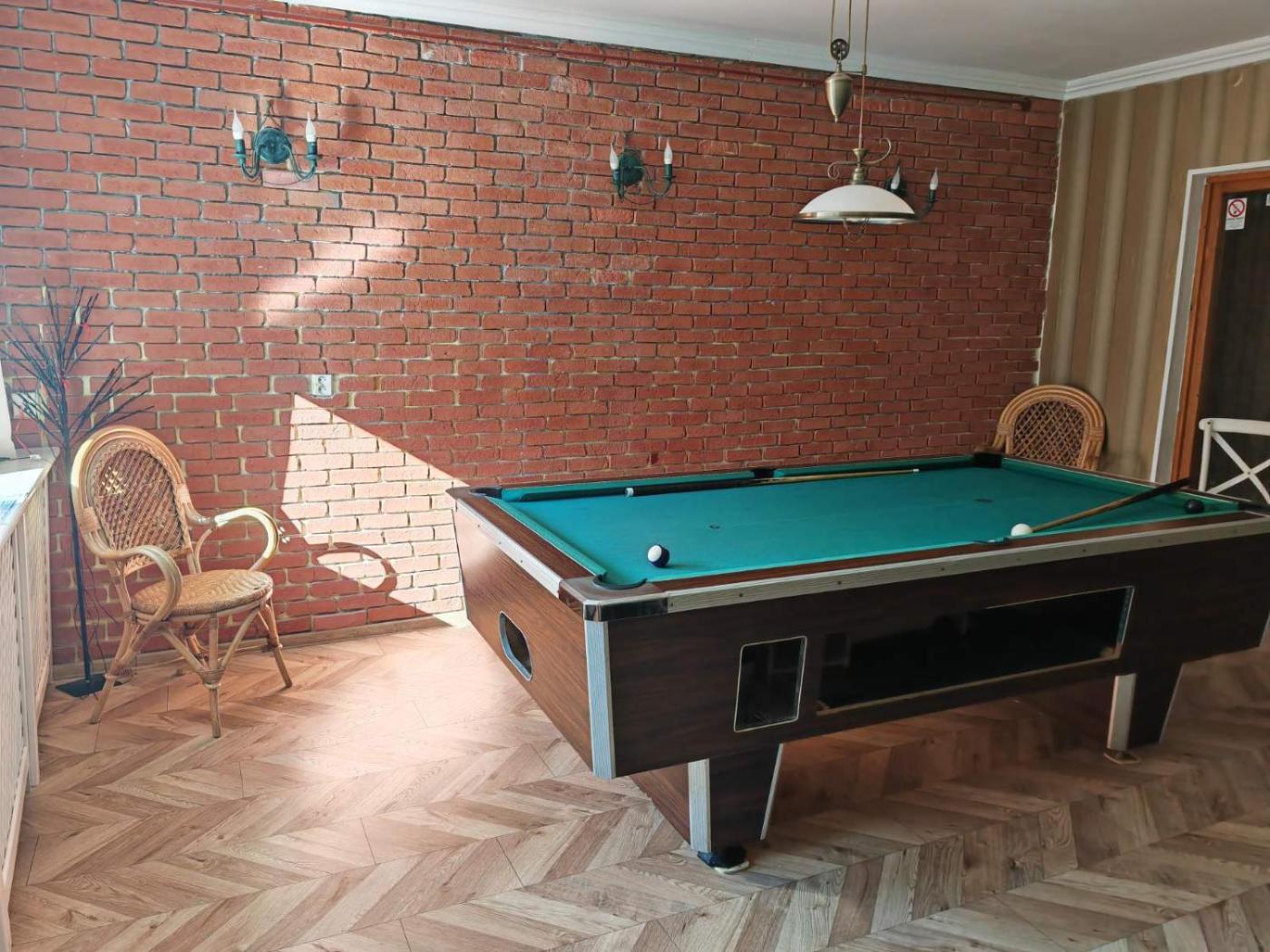 You can play billiards and mini-golf at the apartment. Guests can also warm themselves near outdoor fireplace after a day of skiing.